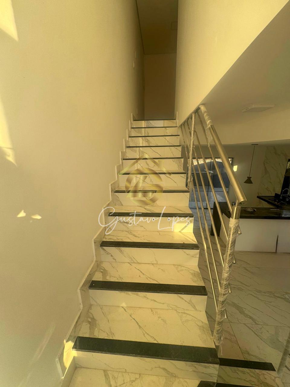 3 quartos, sendo 1 suíte com closet, Banheiro social, Lavabo, Sala ampla e integrada, Cozinha espaçosa, Lavanderia independente, Quintal amplo com área verde, Corredor lateral, Garagem para até 4 veículos.