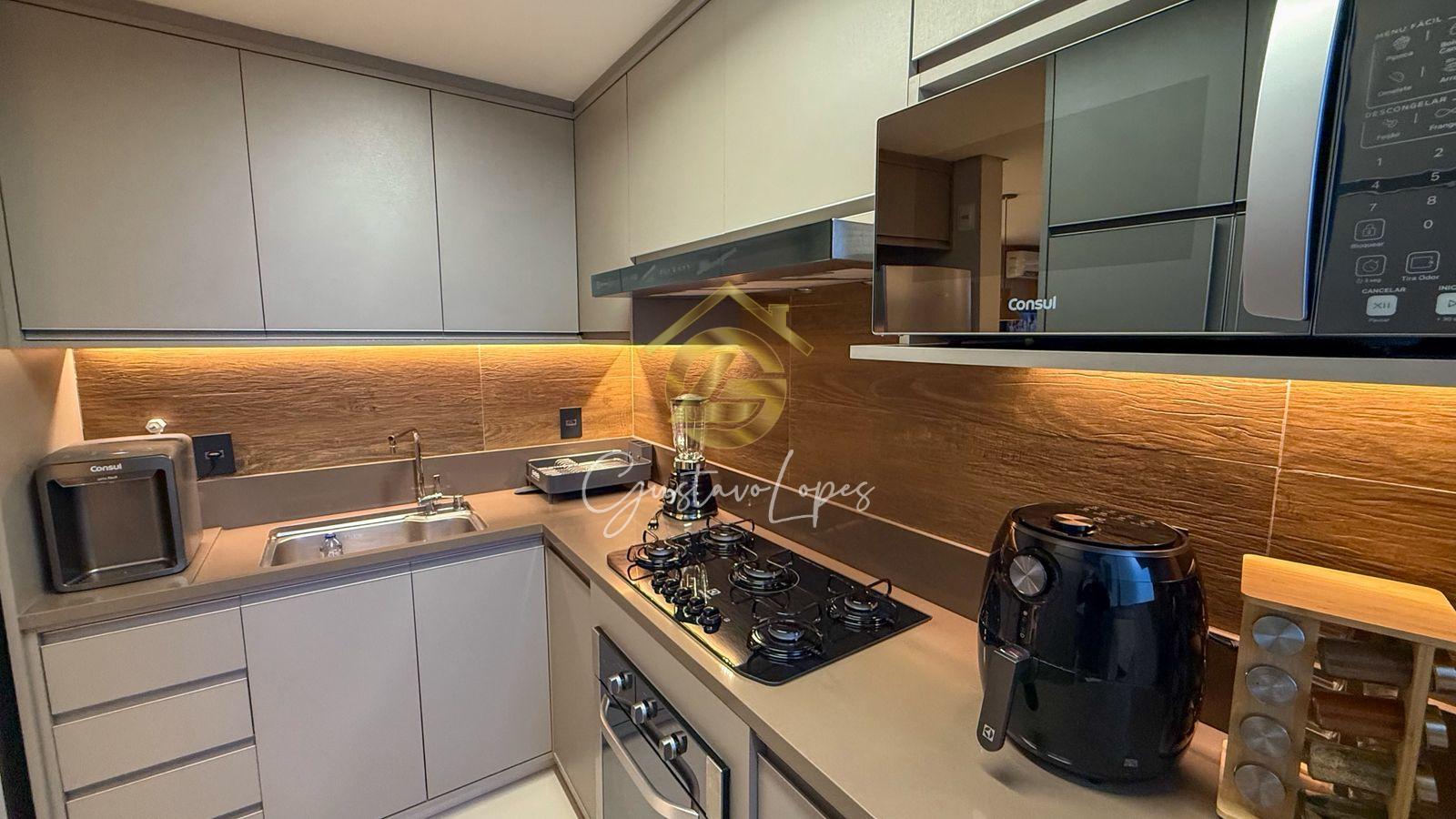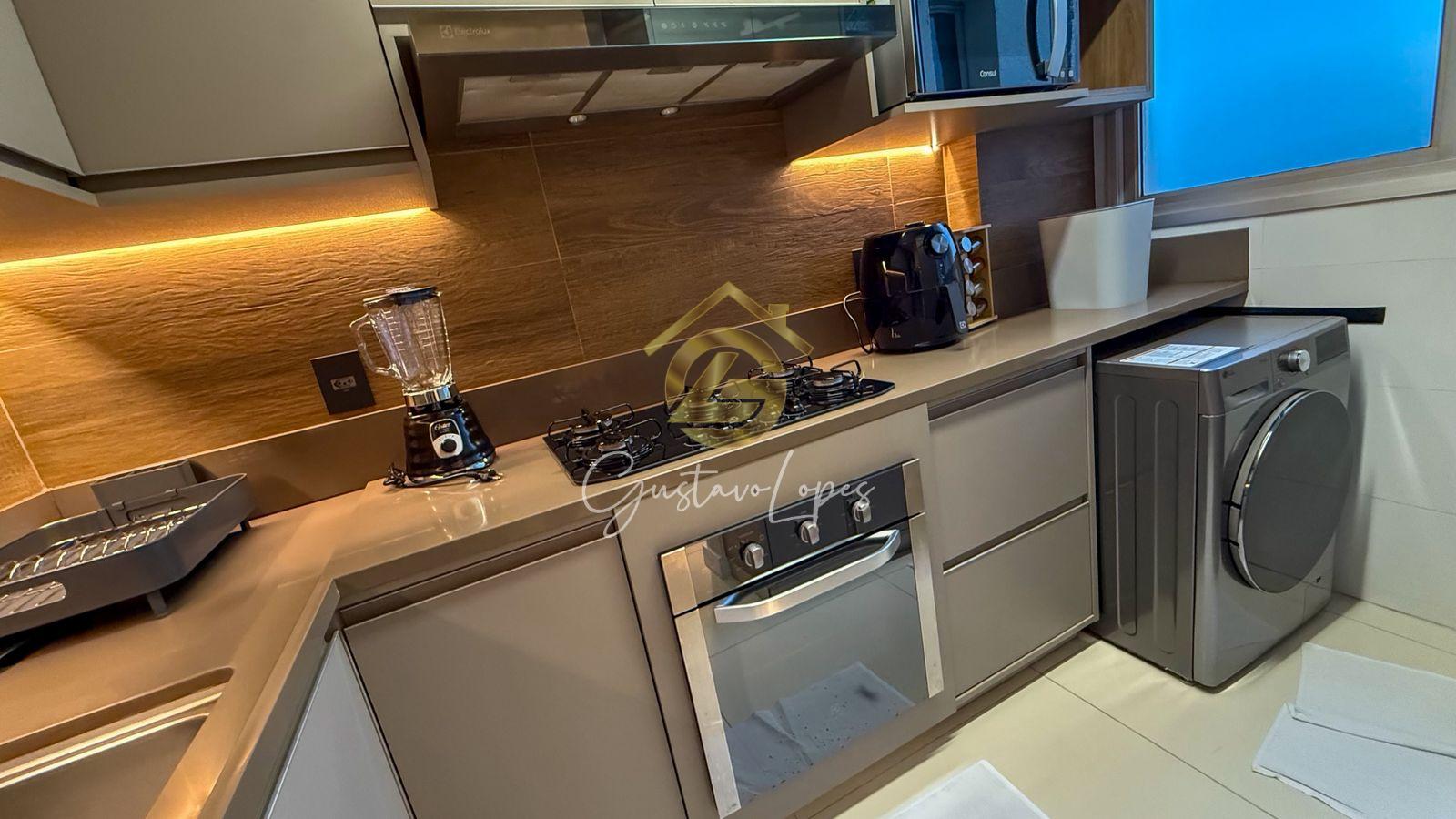 Começamos pela sala, com mesa com 4 cadeira, cortina de Linho, sofá para 3 pessoas ar-condicionado 12000btu, tapete, TV e móveis planejados, varando com uma linda vista, cozinha com geladeira, máquina leva e seca, bebedouro Cônsul, airfry, microondas cooktop com coifa e forno elétrico.
