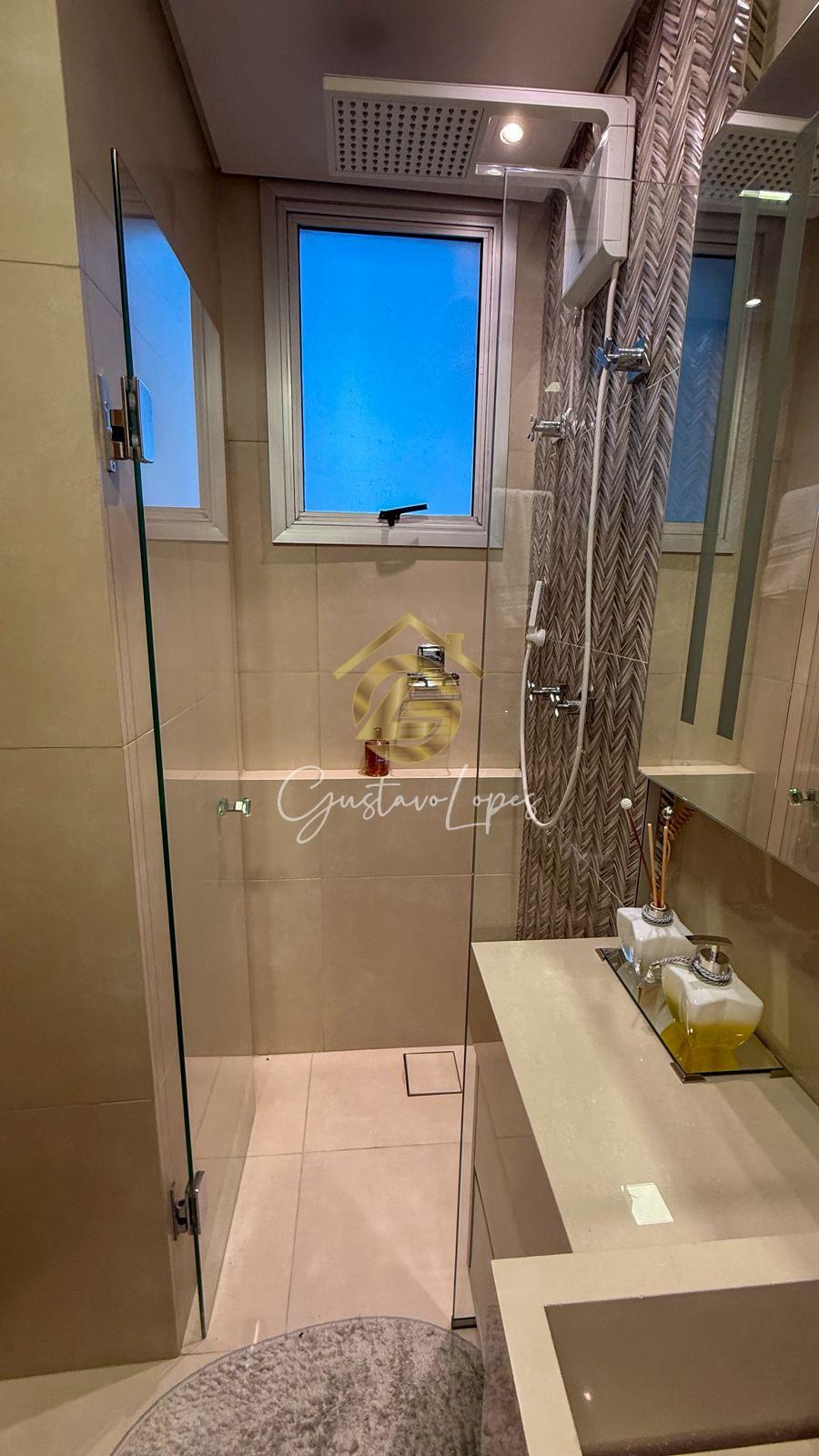 Cozinha com armários, Quartos com armários, Banheiros com armários, Banhos com box, Medidor individual de água, Rebaixamento em gesso, Área de lazer, Salão de festas, Interfone, Churrasqueira, Closet, Esquadrias alumínio, Aquecimento Solar, Gás Canalizado, Jardins, Ar Condicionado Central, Hall Social, Decorado, Portão Eletrônico, Circuito de TV.